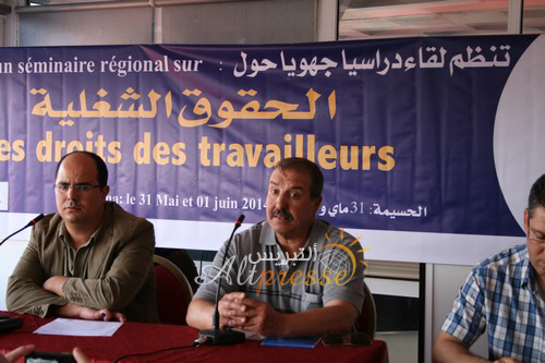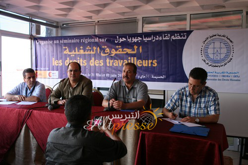 تنظم الجمعية المغربية لحقوق الانسان بالحسيمة اللقاء الدراسي الجهوي حول الحقوق الشغلية يومي 30 ماي و 1 يونيو 2014، والذي انطلقت أطواره عشية اليوم بكلمة المدير المركزي للجمعية، وكلمة رئيس فرع الجمعية بالحسيمة، ورئيس جهة الشمال، وكذلك رئيس جهة الشرق.