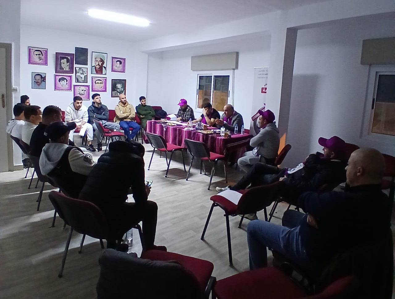 وذكر البلاغ أن الجمع العام أسفر عن انتخاب المكتب النقابي المحلي، الذي جاءت تشكيلته على النحو التالي: الكاتب العام طارق اليوسفي، النائب الأول عماد عفيفي، النائب الثاني إبراهيم الدرفوفي، المقرر محمد العمري، نائب المقرر عمر الشيحاني، أمين المال زكرياء شيخ محند، نائب أمين المال مصطفى بوغروم، والمستشارون المكلفون بالمهام هشام مشوار ونجيب بوتقباش.