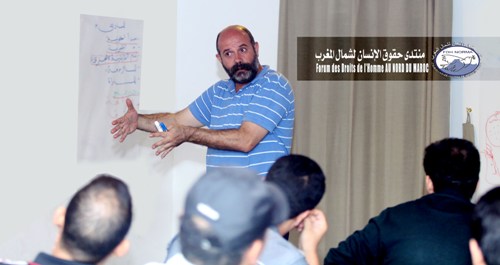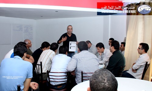 في سياق الاستعدادات الجارية لعقد المؤتمر العام الثاني لمنتدى حقوق الإنسان لشمال المغرب و تثبيتا لأهداف رص قواعد تنظيم قوية، و تقوية قدرات الموارد البشرية للمنتدى، و بناء أطر ذات كفاءة و جودة عالية، نظم هذا الأخير دورة تدريبية في موضوع: المقاربة الحقوقية و تقنيات الاشتغال / دورة الفقيد هشام الشعرة. توزعت على ثلاثة أيام 24/25/26 أكتوبر 2014 بفندق الشاون/ مدينة الشاون، وفق البرنامج الآتي: الورشة الأولى: المقاربة الحقوقية : تأطير الأستاذ و الخبير علي الطبجي ؛ الورشة الثانية: تقنيات الرصد: تأطير الأستاذ حسن محمادي ؛ الورشة الثالثة: خطوات إنجاز و صياغة التقارير الحقوقية: تأطير الأستاذ و الخبير علي الطبجي؛الورشة الرابعة: تقنيات التدبير و التسير المالي: تأطير الأستاذ الخبير محسن العاقل .