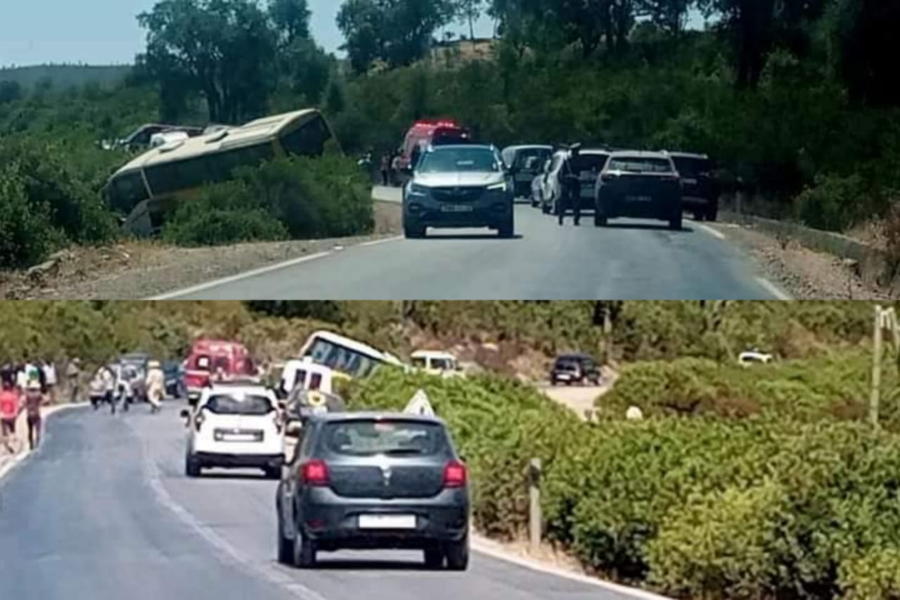 أسفرت حادثة سير شهدتها الطريق الوطنية رقم 2 في المقطع الرابط بين مركز دردارة وباب تازة التابعين لإقليم شفشاون صباح اليوم ( الثلاثاء )3 غشت الجاري 2021، عن إصابات مسافرين كانوا على متن حافلة للنقل العمومي، وآخرين داخل سيارة من نوع مرسيديس 240 اصطدمت بها الحافلة التي كانت انطلقت من مدينة طنجة في اتجاه الحسيمة عبر تارجيست. وقالت مصادر مطلعة، إن الحادثة نجمت عن فقدان سائق الحافلة السيطرة عل مقودها جراء اصطدامها بالسيارة، ماحول مسارها في الاتجاه المعاكس لتسقط في منحدر بجانب الطريق. وبعد علمها بالحادث، انتقلت إلى عين المكان السلطات المحلية ورجال الدرك الملكي والقوات المساعدة ورجال الوقاية المدنية الذين تكلفوا بنقل المصابين على وجه السرعة إلى قسم المستعجلات بالمستشفى الإقليمي بشفشاون، في الوقت الذي فتحت الضابطة القضائية تحقيقا في ملابسات الحادث.
