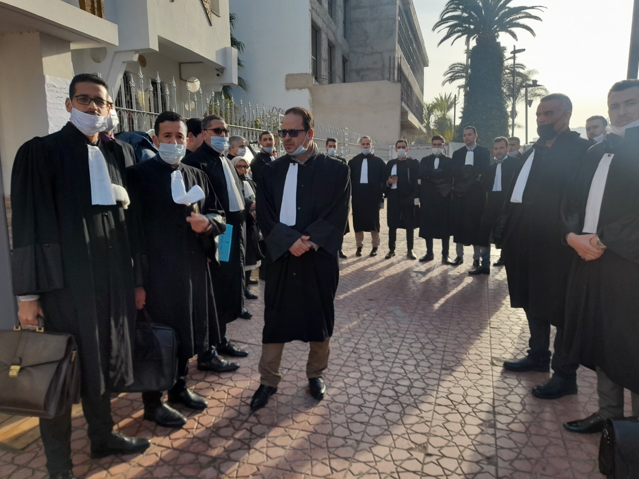 عاشت محكمة الاستئناف والابتدائية بمدينة الحسيمة صباح اليوم ( الإثنين ) استنفارا أمنيا، بعد الشروع في فرض الإدلاء بجواز التلقيح، كشرط لولوج المحكمتين سالفتي الذكر. وشهد الفضاء الخارجي للمحكمتين حضورا أمنيا مكثفا، تحسبا لأي طارئ. واحتج محامو الحسيمة صباح اليوم ذاته على هذا القرار المشترك الصادر عن وزير العدل، والرئيس المنتدب لدى المجلس الأعلى للسلطة القضائية، ورئيس النيابة العامة، القاضي بمنع دخول القضاة والمحامين والموظفين والمواطنين غير المتوفرين على جواز التلقيح، والذي دخل حيز التنفيذ اليوم الإثنين، ونظموا وقفة احتجاجية أمام مقر ابتدائية المدينة الكائنة بشارع طارق بن زياد. ويرفض المحامون التابعون لهيئة الناظور ـ الحسيمة، مضامين القرار الثلاثي، حيث أكدوا أنهم غير معنيين بالمرة بمضامين الدورية المشتركة المذكورة، لعدم صدورها عن المؤسسات المهنية القانونية المنتخبة من قبلهم، ورفضا منهم لأي وصاية من أي جهة كانت، داعين المحامين إلى تمسكهم باستقلالهم عن كافة السلط. ومنع رجال الأمن مجموعة من موظفي ابتدائية الحسيمة من الولوج إليها، ماجعل زملاءهم بمحكمة الاستئناف يتضامنون معهم. وأكد مصدر من هيئة محامي الناظور ـ الحسيمة، أن المحامين لم يقاطعوا الجلسات، بل منعوا من الولوج للمحاكم ما فرض علينا المقاطعة احتجاجا على ذلك، مطالبا بالتراجع الفوري عن هذا، شاكرا جميع المحامين الذين تفاعلوا إيجابيا مع قرار المقاطعة. واعتبر فؤاد صالح رئيس جمعية المحامين الشباب بالحسيمة، الوقفة التي نظمها المحامون أمام مقر المحكمة الابتدائية بالحسيمة، تأتي تنفيذا لبلاغ هيئة المحامين بالمغرب، واحتجاجا على منعهم من الولوج إلى فضاء المحكمة التي تقدم للمواطنين خدمات تتعلق بحقوقهم. وأضاف صالح أن محامي المدينة تفاجأوا لقرار الإدلاء بجواز التلقيح لولوج محاكم المملكة، معتبرا هذا القرار يتعارض مع مضامين الدستور والمواثيق الدولية، وأنه خطوة مرفوضة شكلا ومضمونا، وشططا وفيه نوعا من الإلزامية، مسجلا استغراب المحامين لهذا الأمر.
