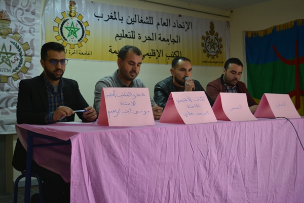 انعقد يومه الخميس 7 أبريل 2022 جمع عام تجديدي للمكتب المحلي للجامعة الحرة للتعليم فرع بني حذيفة بمقر دار الشباب، حيث كانت البداية مع كلمة اللجنة التحضيرية التي كان مضمونها ترحيبيا بكل الحاضرين من نساء ورجال التعليم الذين يشتغلون بذات الجماعة، ليأخذ السيد أحمد بعلي الكاتب الاقليمي مداخلته، بمناقشته واقع التعليم بالمغرب ومآل النضالات الفئوية، ليشدد في هذا الصدد على ضرورة النضال الوحدوي من أجل حل جميع الملفات العالقة؛ لتنتقل الكلمة بعد ذلك إلى السيد يونس ايت ابراهيمي الذي تمحورت مداخلته حول دور العمل النقابي الجاد للرفع من مكانة نساء ورجال التعليم داخل المجتمع، وأكد على ضرورة اشتغال النقابات على مستوى التكوين المستمر بالاعتماد على أطرها الخاصة، لتختتم اشغال هذا الجمع بانتخاب مكتب جديد بوأ السيد سليمان عبد الوهاب كاتبا عاما لبني حذيفة والنواحي للجامعة الحرة للتعليم؛ وجاء المكتب الجديد على الشكل التالي:
