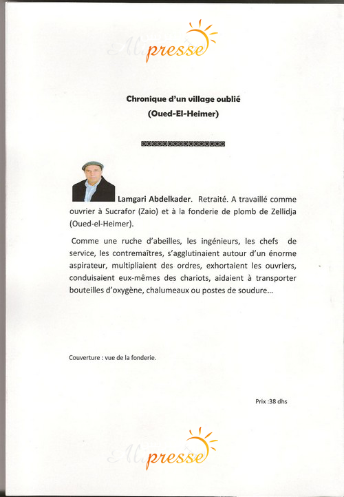تتناول هذه الرواية التي تعود للمؤلف الأستاذ عبد القادر لمكاري، حياة العمال وظروف عملهم، والمعاناة التي عاشوها والتي لازالوا يعيشونها بمعمل مسابك ” زليجة للرصاص “، بواد الحيمر، والاهمال والتهميش اللذين يطالان هذه القرية، كما تتطرق الرواية للأمراض المهنية الخطيرة التي تعرض لها جل العمال إن لم نقل كلهم، خصوصا مرض